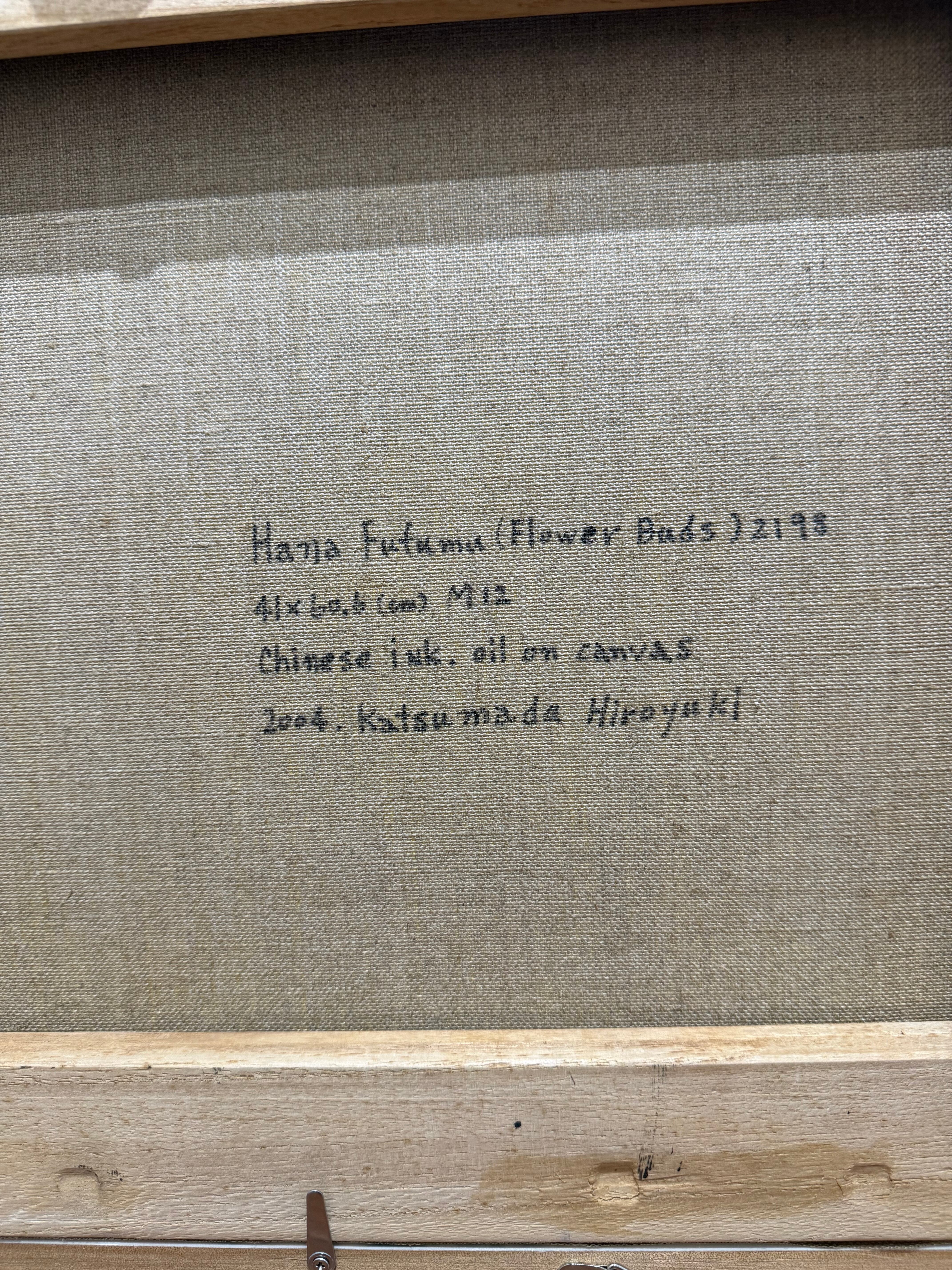 勝間田弘幸氏の「花ふふむ(蕾)」シリーズは、彼の芸術的探求の中で生まれた重要な作品群であり、主に「生命の象徴」としてのテーマを持っています。このシリーズは、彼が長年の油彩画による表現の限界を感じ、墨を用いた新たなアプローチを試みた結果、誕生しました。テーマの核心:生命と再生: 「花ふふむ(蕾)」というタイトル自体が、花の蕾を象徴しており、生命の誕生や成長、再生の過程を表現しています。蕾は、開花する前の状態を示し、潜在的な可能性を秘めています。精神のビッグバン: 勝間田氏は、このシリーズを通じて「精神のビッグバン」という概念を提唱しており、作品が観る者に深い感動を与え、精神的な覚醒を促すことを目指しています。無意識の表現: 彼の作品は、無意識の領域から生まれるものであり、観る者に直感的な反応を引き起こすことを意図しています。これは、彼が追求する「意味を消していく」プロセスとも関連しています。このように、「花ふふむ(蕾)」シリーズは、生命の本質や精神的な探求をテーマにした作品であり、勝間田氏の独自の視点と技法が融合したものとなっています。